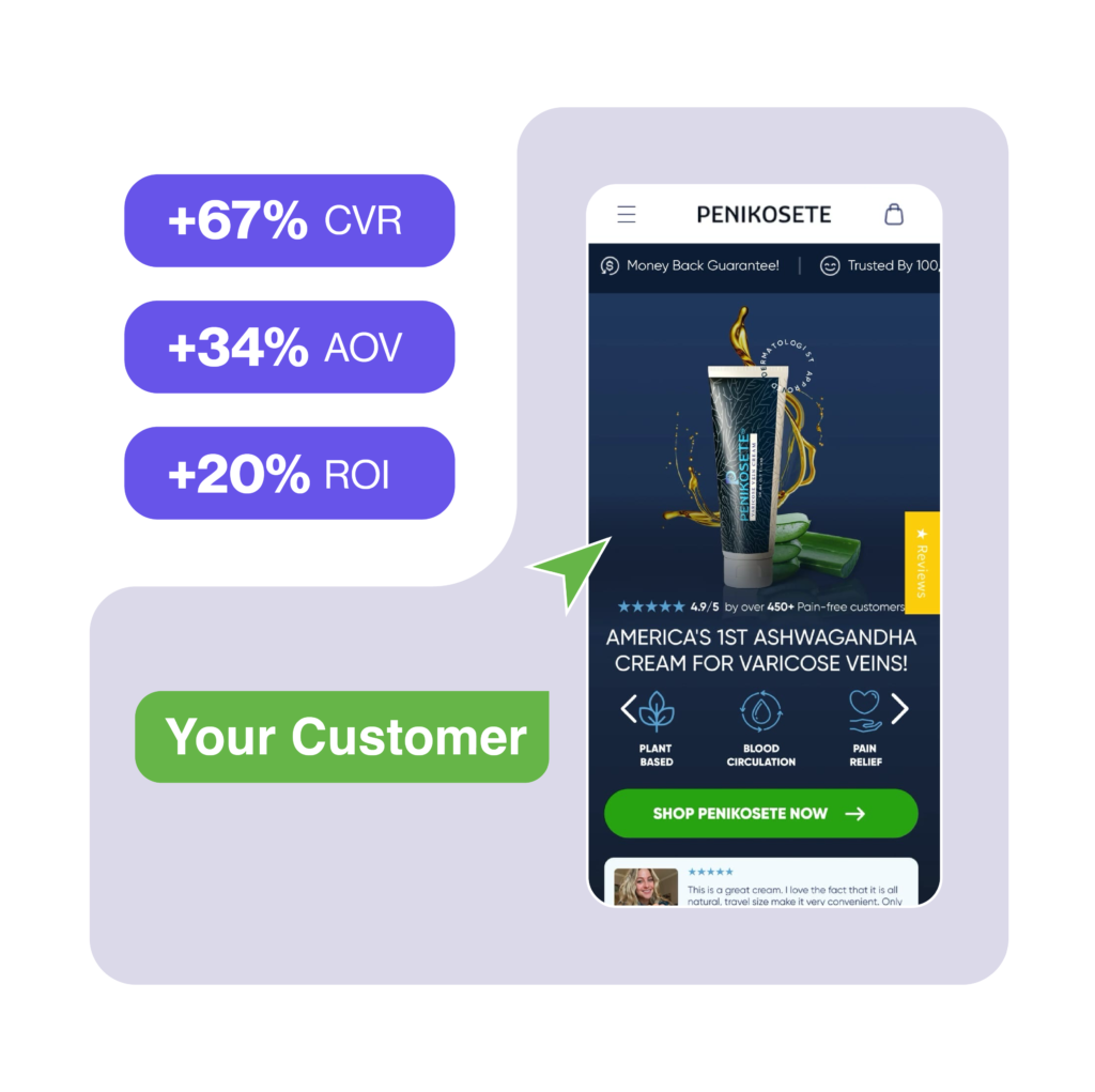 Most clients see 10–50% CVR lift and 20–40% AOV lift. On a $100K/month store, that’s $10–30K/mo unlocked.
